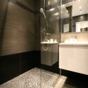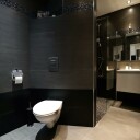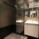Łazienka jest wyposażona w przestronny prysznic typu walk-in z odpływem liniowym. W suficie łazienki zostały zamontowane głośniki do radia. Ciepła woda jest z bojlera elektrycznego (100L), który został dyskretnie zamontowany w suficie.